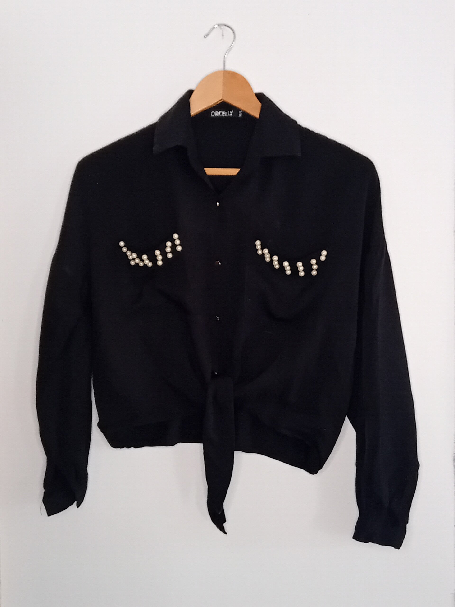 Chemise noire avec perles